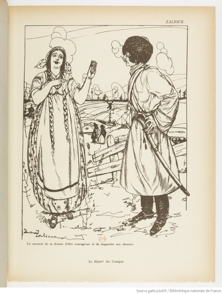 ZALIOUK – For the moment, I am in good health and still on the go, because I am a liaison officer, cyclist, on foot, and finally a motorcyclist. I continue to serve in the same group, although I’ve had some thoughts about leaving the front, but now if I’m not… zig*… I’ll try to go there** and see my Russian brothers again, who don’t always agree. I want to go there if possible and spread propaganda for France. My best regards to my friends [sic].